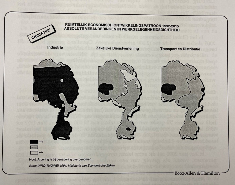 Visualisatie van de verwachtte krimp van de industriële sector in de periode 1995-2015 (rapport Goede morgen 2015!).