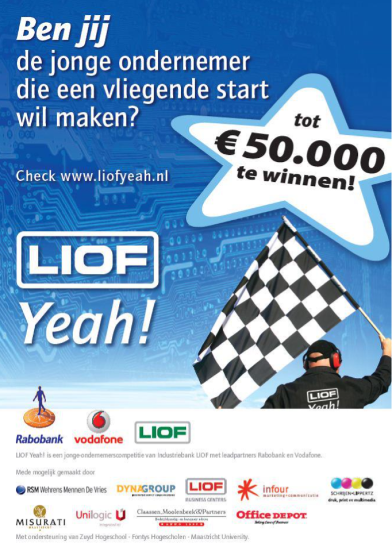 Ter gelegenheid van het 35-jarig bestaan van LIOF in 2010 hebben we als regionale ontwikkelingsmaatschappij van Limburg de focus verlegt op de ondernemers van de toekomst, oftewel studenten. Het project LIOF Young entrepreneur award happening (Yeah!) had tot doel om ondernemende studenten te stimuleren een bedrijf te beginnen. De economie kon in deze tijd wel nieuwe impulsen gebruiken en waar beter deze te vinden dan bij de ondernemers van de toekomst!