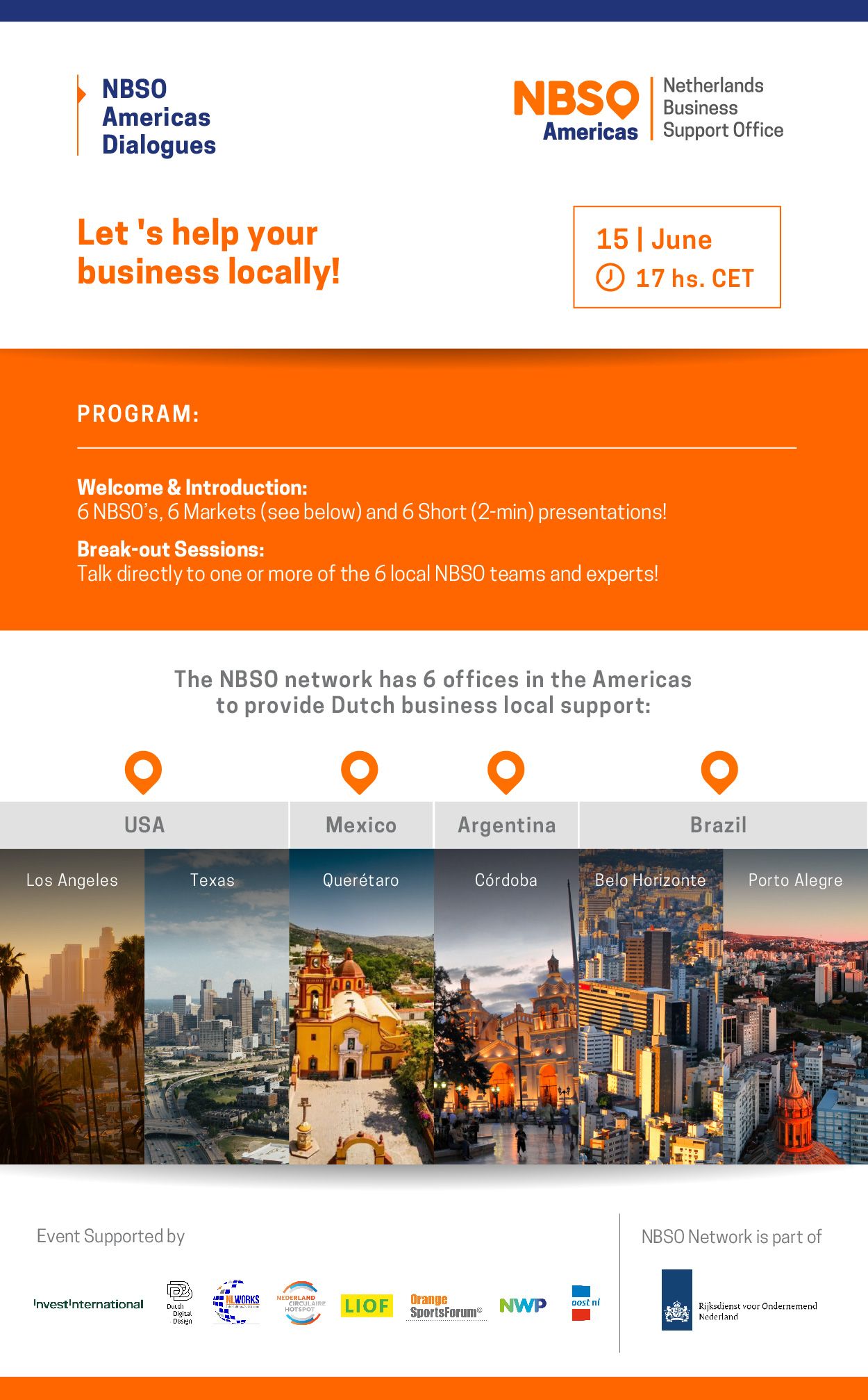 NBSO Americas Dialogues zijn terug! Wil je nieuwe markten ontdekken in Amerika? Mis dan niet deze dag waarop ingegaan wordt op de sectoren en kansen in de verschillende regio’s in Amerika: Texas, Californië, Mexico, Argentinië en Brazilië.