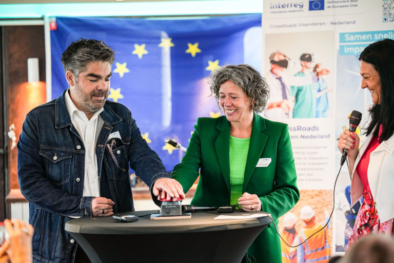 Vandaag, 1 september, opent de eerste subsidieoproep van CrossRoads Vlaanderen-Nederland. Kleine en middelgrote ondernemingen die over de landsgrenzen heen samenwerken en innoveren kunnen subsidie aanvragen voor innovaties die maatschappelijke uitdagingen aanpakken. Astrid Bronswijk van het Nederlandse ministerie van Economische Zaken en Klimaat en Dave Hendriks, vertegenwoordiger van Vlaams minister van Economie en Innovatie, openden vandaag de eerste oproep midden op de Vlaams-Nederlandse grens.