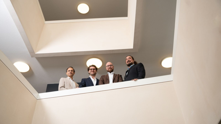 Op de foto zie je van links naar rechts: Marcel Schün (COMPUTD), Lenn Houbiers (LIOF), Pieter Schaap (COMPUTD) en Marcell Ignéczi (COMPUTD).